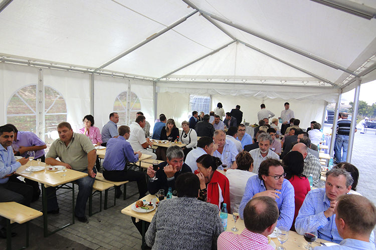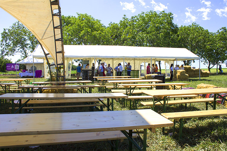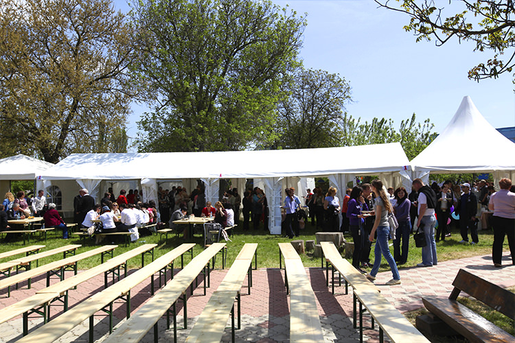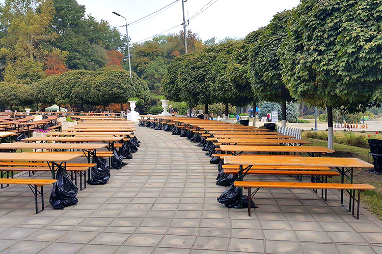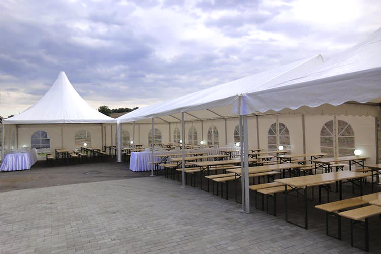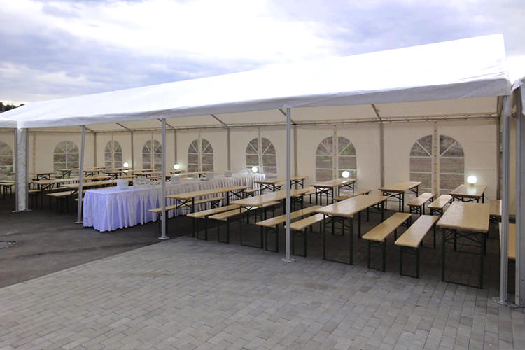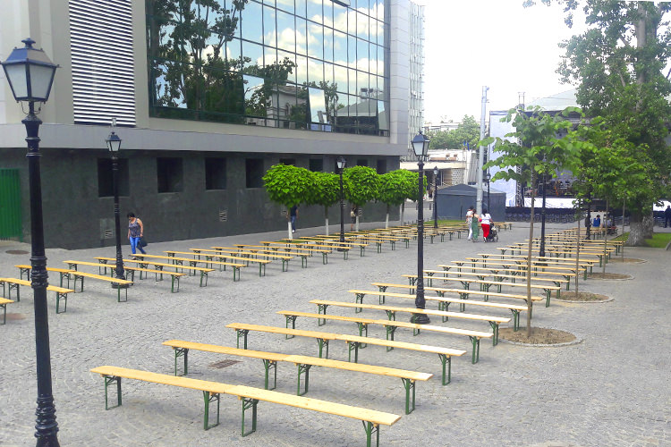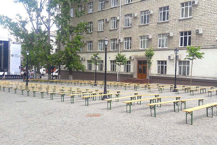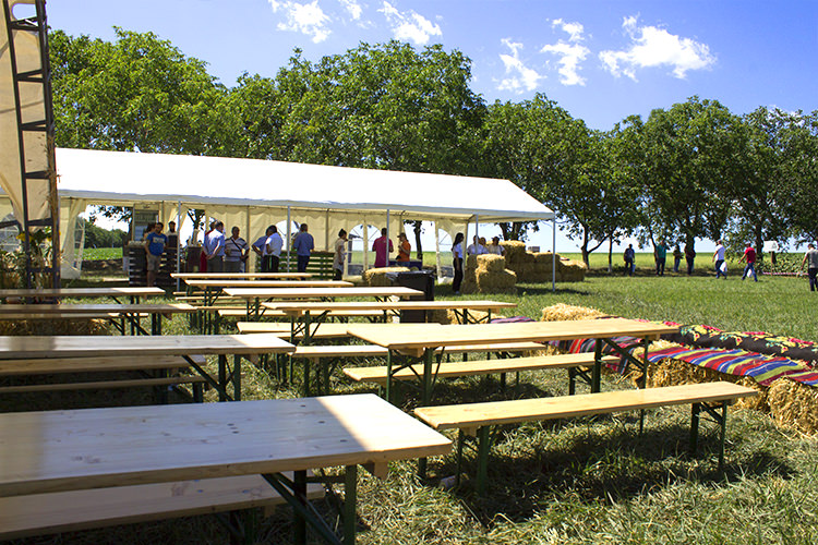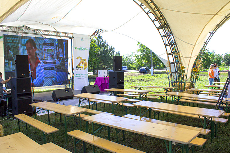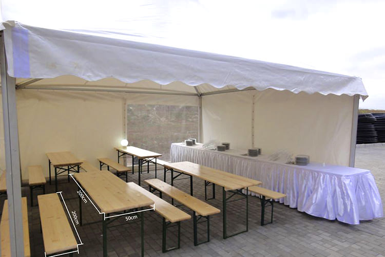 The tables and chairs are made of high quality white wood that offers considerable resistance. The furniture is designed for celebrations and recreation, a set composed of two chairs and a table.
